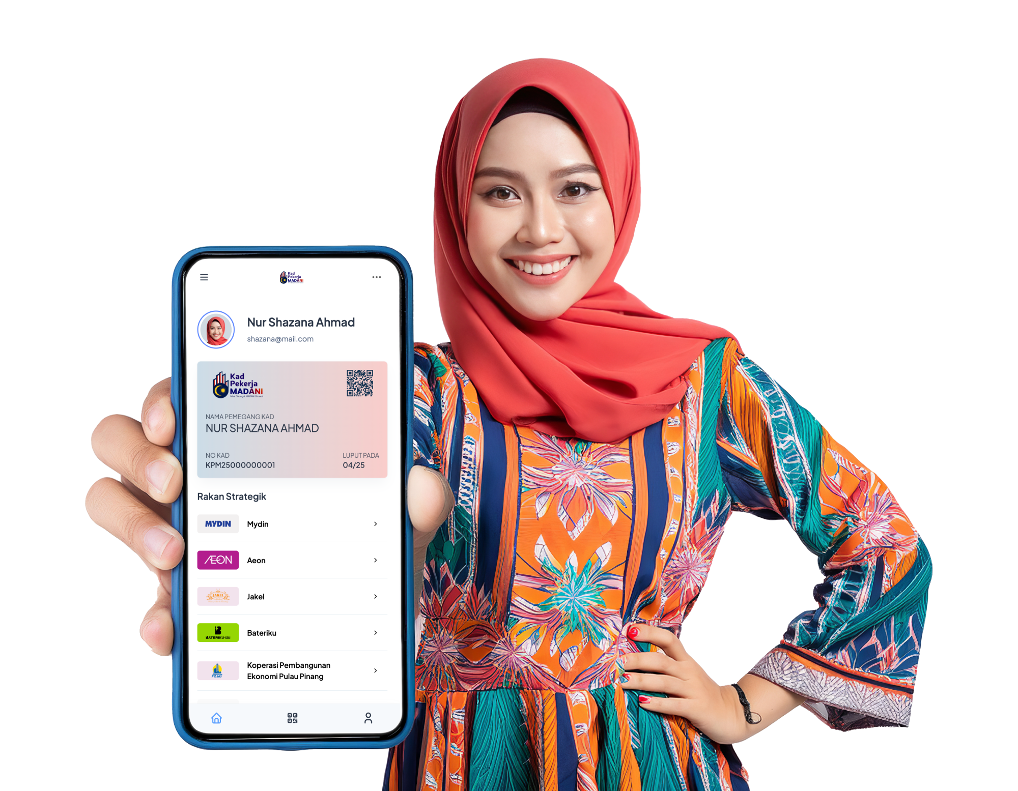 Kad Pekerja MADANI boleh digunakan di mana-mana kedai rakan strategik kami dengan mengemukakan Kad Pekerja MADANI. Kod QR anda akan di imbas oleh kedai rakan strategik.